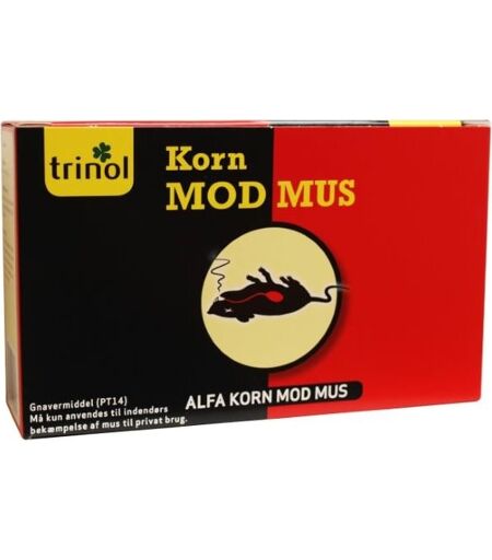 Effektiv og skånsom bekæmpelse af mus TRINOL® Alfa Korn er en særdeles effektiv løsning til bekæmpelse af mus. Midlet indeholder Alphachloralose, der virker som et bedøvelsesmiddel og får musen til at falde i en dyb søvn, hvor den roligt sover ind. Denne metode virker hurtigere end traditionelle musegifte, hvilket sikrer en mere skånsom bekæmpelse. Musen fornemmer ikke, at kornene er farlige, og effekten indtræffer forholdsvis hurtigt efter, at den har indtaget en passende mængde. Produktet leveres i 15 poser á 10 gram, som nemt kan placeres i foderstationer for en målrettet indsats. Specifikationer: Indhold: 15 poser á 10 g (i alt 150 g) Dosering: 1-2 poser pr. foderstation for hver 3-5 meter Aktivt stof: Alphachloralose Anvendelse: Kun til indendørs bekæmpelse ...