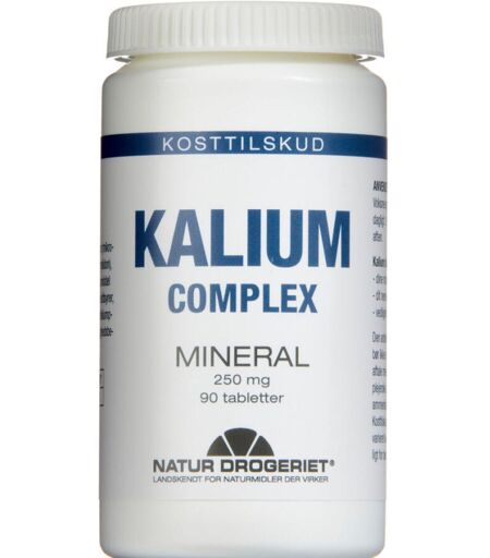 Kalium Complex er tabletter, der bidrager til en normal muskelfunktion og samtidig medvirker til at sikre, at nervesystemet fungerer normalt. Desuden hjælper kalium til at holde dit blodtryk normalt. Dispenseringsform Tabletter. Dosis og anvendelse Voksne og børn fra 11 år: 2 tabletter dagligt. 1 tablet morgen og 1 tablet aften. Den anbefalede daglige dosis bør ikke overskrides. ...