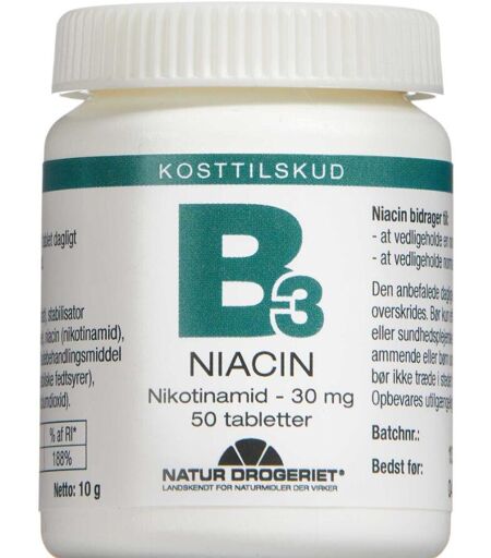 Natur Drogeriet Niacin Nikotinamid Tabletter Kosttilskud 50 stk