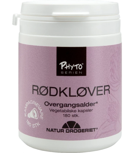 Natur Drogeriet Red Clover 300 mg er et kosttilskud til voksne. Rødkløver bidrager til en rolig overgangsalder og letter gener i forbindelse med overgangsalderen, som eksempelvis hedestigninger, svedeture, rastløshed og irritabilitet. Vi anvender hele, tørrede blomsterhovedet for at få alle plantens stoffer med - både de kendte og de mindre kendte. Vi tror nemlig på kompleksitet. Rødkløver indeholder fra naturens side isoflavoner. Som noget helt nyt har vi tilføjet et ekstrakt, så indholdet af isoflavoner bliver stabilt og endnu bedre kan hjælpe ”varme” og hormonelle kvinder. Fordele: Kosttilskud Til voksne Vegansk Højt indhold af naturlige isoflavoner Nemme at indtage og have med på farten Bidrager til en rolig overgangsalder Daglig dosis: Voksne: 1-2 kapsler 2 gange dagligt før måltiderne. Hvis det ønskes, kan pulveret tages ud af kapslerne Ingrediensliste: Pulveriserede rødkløverblomster (Trifolium pratense L.) Rødkløverblomstekstrakt (Trifolium pratense L.) Hydroxypropylmethylcellulose (vegetabilsk kapsel) OBS: Den anbefalede daglige dosis bør ikke overskrides. Bør kun efter aftale med læge eller sundhedsplejerske anvendes af gravide, ammende eller børn. Opbevares utilgængeligt for børn. Kosttilskud bør ikke træde i stedet for varieret kost. ...
