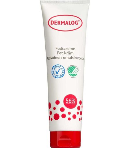 DERMALOG er en hudplejeserie, der er udviklet af danske hudlæger. Alle DERMALOGs produkter er uden parfume og mærket med svanen* og allergyCertified. Dette er din garanti for, at vi passer på dig og miljøet. * Det er kun vores skælshampoo, der ikke er blevet mærket med svanen. DERMALOG fedtcreme er udviklet af hudlæger til tør hud og har en aktiv farmakologisk effekt. Fedtcremen tåles af alle. Fedtcremen svier ikke på huden. Fedtcremen virker straks på grund af indholdet af naturlige hudlipider. Den er langtidsvirkende, giver glat hud og modvirker kløe og udtørring. DERMALOG Fedtcreme har en fedtprocent på 56%. Andre pakningsstørrelser DERMALOG Fedtcreme 50 ml DERMALOG Fedtcreme 100 ml Dosis og anvendelse Fedtcremen er særligt velegnet til tør og kløende hud og kan anvendes til både krop, ansigt og tørre hudpartier. ...