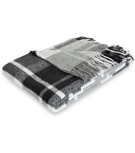 By Borg Uldplaid med finkæmmet uld - 130x200 cm - Blødt uldtæppe med flotte grå tern - plaid