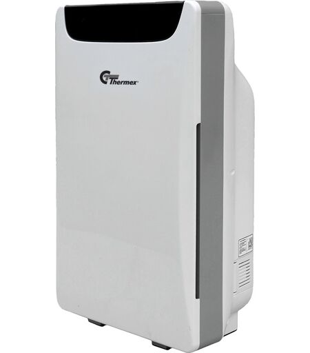 Thermex Puremex 3 LuftrenserThermex Puremex 3 luftrenser tjekker luftkvaliteten og sikrer dig et sundt indeklima. Mange af vores hjem er fyldt med støvmider, pollen, dyreallergener, bakterier, kemikalier, røg, uønskede partikler og dårlig lugt. Og selvom vi gør rent og lufter ud, er det ikke altid nok, men med denne lufterenser får du dækket op til 60 m2 af dit hjem med bedre sundt indeklima.Specifikationer:Produkttype: LuftrenserCADR værdi: 428Lydtryk ved 3 meter: 61 dbARækkevidde: 60 m2Vægt: 8 kg ...