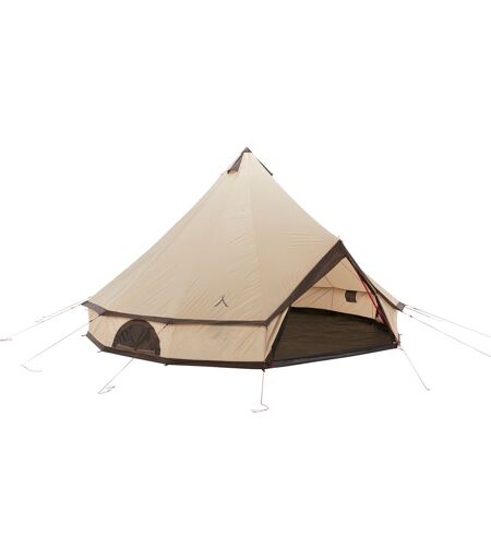 Grand Canyons INDIANA 10 runde telt er et ekstremt pålideligt, rummeligt og let gruppetelt til op til 10 personer. Den traditionelle, men her moderne fortolkede tipikonstruktion med en central stolpe og en færdigmonteret A-ramme, der understøtter den store teltindgang, opsættes med lynets hast. De stående teltvægge giver en optimal udnyttelse af pladsen og giver masser af plads og en god rumfornemmelse. Dette gennemprøvede design giver pålidelig beskyttelse selv i det værste vejr. INDIANA 10 trodser storm og regn og er velegnet til teltlejre såvel som til krævende og længere ture, hvor vægt ikke er et problem, pålidelighed og meget plads er vigtigt. Det indsyede gulv holder ikke kun irriterende dyr udenfor, men giver også nem og hurtig montering. INDIANA 10 har en gavlformet indgang med en lille baldakin. Døren kan rulles op sidelæns og bindes op. ...