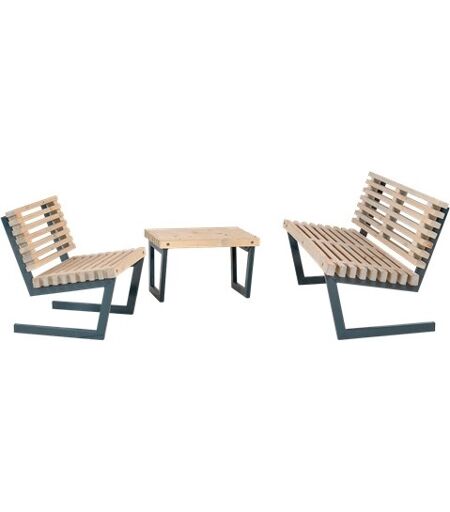 Siesta loungesæt i råt og rustikt look Ønsker du at skabe en lækrog på din arbejdsplads, hvor der kan være plads til fordybelse og hygge. Siesta loungesæt er det oplagte sæt at benytte til dette, det har rene linjer samtidig med at det rå træ giver et rustikt look. Sættet indeholder en sofa, stol og et lille bord. Sættet kan rumme plads til mange omkring bordet. Ønsker man mere plads, er det muligt at benytte bordet som en skammel og få en ekstra plads. Sættet kan modstå vind og vejr og er vedligeholdelsesfrit hele sæsonen, hvis træet behandles inden sæsonstart. Se nærmere info om vedligeholdelse og efterbehandling af produkter fra PLUS her. Dette produkt er lavet af FSC®-certificeret nåletræ og andet kontrolleret materiale. Farve: Drivtømmer farve - RAL 7038 transparent Galvaniseret stålstel Materiale: Nåletræ Overflade; Rå og rustik - harpiksudtræk og revner i træet kan forekomme Dimensioner - bord (HxLxB): 43 x 80 x 49 cm Dimensioner - sofa (HxLxB): 43 x 138 x 49 cm Dimensioner - Stol (HxLxB): 43 x 80 x 49 cm Certificering: FSC MIX 70% Antal siddepladser: 3-4 Leveres usamlet Vægt: 112 kg. ...
