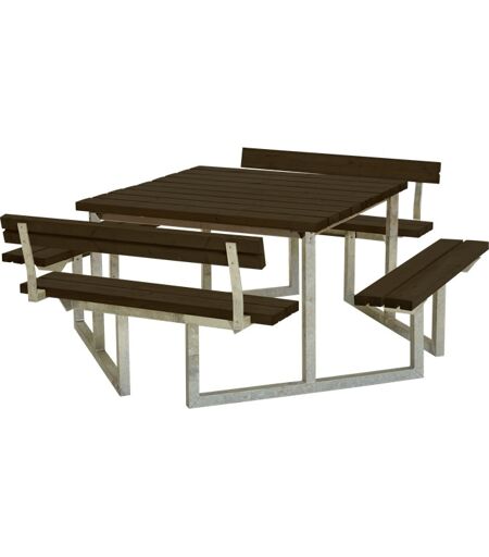 Kvadratisk bord-bænkesæt med ryglæn Kvadratisk bord-bænkesæt med bløde former, som er særdeles velegnet til udeområder, både i virksomheden, institutioner eller privat. Bord-bænkesættet inviterer til socialt samvær med kollegaer, venner eller familie. Dette bord/bænkesæt har desuden ryglæn for at øge komforten. Sættet er fremstillet i massivt fungicidbehandlet nåletræ med varmgalvaniseret stålstel. Dette havesæt er malet sort, så det fremstår flot og moderne. Husk blot at vedligeholde bord/bænkesættet og så vil det holde i de næste mange år. Se nærmere info om vedligeholdelse og efterbehandling af produkter fra PLUS her. Dette produkt er lavet af FSC®-certificeret nåletræ og andet kontrolleret materiale. 42 mm massive planker Materiale: Nåletræ og stål Overflade: Fungicidbehandlet og grundmalet Farve: Sort Mål bord (LxBxH): 118 x 118 x 73 cm Mål bænk (LxBxH): 118 x 25 x 45 cm Samlet mål (LxBxH): 204 x 227 x 76/45 cm Siddehøjde: 45 cm Certificering: FSC MIX 70% Inkl. to ryglæn Antal siddepladser: 8 Leveres usamlet Vægt: 96,9 kg. ...