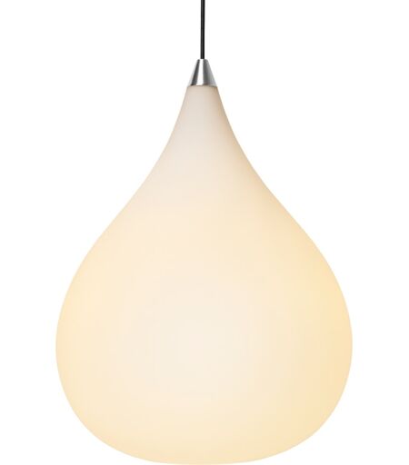 Dråbeformet pendel med blødt og stemningsfuldt lys Drops pendlen fra Halo Design er en stilren lampe, der forener skandinavisk minimalisme med klassisk glashåndværk. Den smukke dråbeform i opalt triplexglas sikrer en jævn og behagelig lysfordeling uden at blænde, hvilket gør den ideel til både spisebordet, stuen eller kontoret. Designet er skabt af Michael Waltersdorff og kendetegnes ved sine rene linjer og elegante materialevalg. Pendlen er udstyret med en standard E27-fatning, så du selv kan vælge lyskilde og tilpasse lysstyrken efter behov. Den sorte stofledning skaber en flot kontrast til det hvide glas, mens ophænget i børstet metal giver et eksklusivt touch. Drops-serien fås i flere størrelser, så du kan kombinere dem og skabe en harmonisk belysning i dit hjem eller på arbejdspladsen. Farve: Hvid/opal Mål (ØxH): 38 x 51 cm Materiale: Mundblæst opal glas, aluminium Fatning: E27 Maks. Watt: 60W Lyskilde inkluderet: Nej Ledning: 250 cm tekstil ledning ...