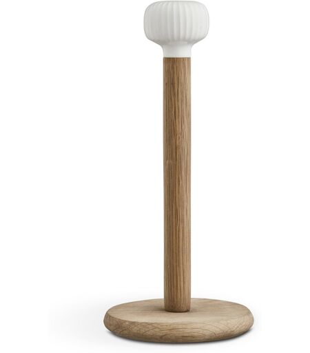 Gør din køkkenrulle elegant Med køkkkenrulleholderen fra Kähler Hammershøi behøver din køkkenrulle ikke kun at være et praktisk indslag på bordet. Stil den i denne holder og du vil opdage, at den faktisk kan pynte på bordet.Med den varme glød fra egetræet og dens rillede top passer den på de fleste borde.Mål: H:31,5 cm Ø: 14 cmFarve: Eg & HvidMateriale: Egetræ og keramikDesign: Hans-Christian Bauer ...