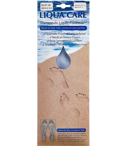PRODUCTET LIQUA CARE THERAPEUTIC FLOWGEL INSOLE ER KLASSIFICERET SOM MEDICINSK UDSTYR Liqua Care Therapeutic FlowGel-Insole er en gelsål, der fordeler trykket på foden over et større areal samtidigt med, at fodens muskler bliver masseret. Liqua Care Therapeutic FlowGel-Insole er med til at stimulere venepumpen og reducere presset i foden. Avendelse: Kan anvendes ved behov og ømme fødder. Tip: Kan afklippes til en størrelse, der passer. ...