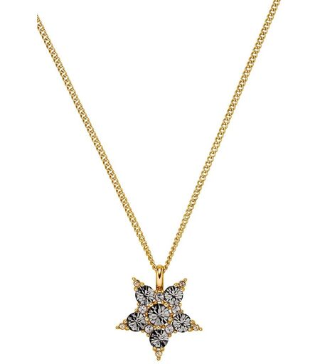 LYRA - en fantastisk halskæde hvor det markante vedhæng udgøres af en stjerne tæt besat med facetslebne krystal sten. Kæden er designet i messing, er ca 45 cm, dertil læg en forlængerkæde på 5 cm. Vedhænget måler ca 22 mm fra spids til spids. Her vist i diskrete gråtonede krystaller på guldtonet kæde. Dansk Design og super glamurøs. Shop DYRBERG/KERN LYRA HALSKÆDE her. Elsker du også Dyrberg/Kern smykker, ringe, armbånd, ørestikker, øreringe og halskæder? Vi har alt på Dyrberg/Kern shoppen. ...