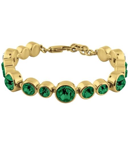 CALICE - er en af vore krystal armbånds klassikere, som kommer igen i nye varianter. Det leddelte armbånd med sten i forskellige størrelser er designet i poleret stål, overlagt med en teknisk belægning der bare holder. Her vist i guldtonet og smukke smaragdgrønne nuancer. Længde 17, 5 cm med mulighed for forlængelse. Designeti Danmark og fri for cadmium, nikkel og bly. Shop DYRBERG/KERN CALICA ARMBÅND her. Elsker du også Dyrberg/Kern smykker, ringe, armbånd, ørestikker, øreringe og halskæder? Vi har alt på Dyrberg/Kern shoppen. ...