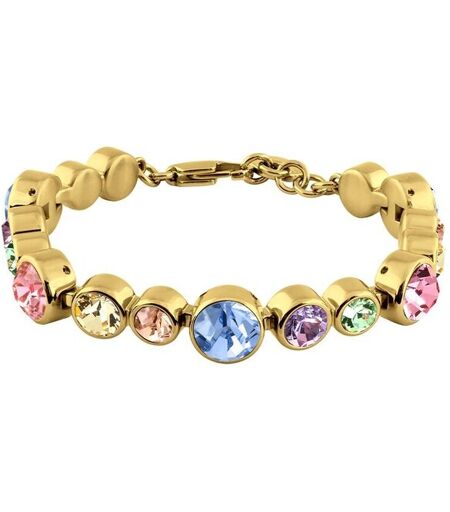 CALICE - er en af vore krystal armbånds klassikere, som kommer igen i nye varianter sæson på sæson. Det leddelte armbånd med sten i forskellige størrelser er designet i poleret stål, overlagt med en teknisk belægning der bare holder. Her vist i guldtonet og smukke pastel farver nuancer. Længde 17, 5 cm med mulighed for forlængelse. Designet i Danmark og fri for cadmium, nikkel og bly. Shop DYRBERG/KERN CALICE ARMBÅND her. Elsker du også Dyrberg/Kern smykker, ringe, armbånd, ørestikker, øreringe og halskæder? Vi har alt på Dyrberg/Kern shoppen. ...