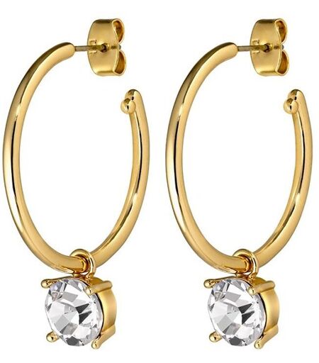 DIEGA - en cool og trendy stor hoopørenring på 26 mm i diameter. Vedhænget er en aftagelig 8 mm store facetslebet krystal sat i en let fatning. Her vist i skinnende guldfinish og klare sten. SPinkel i design og lige skøn til hverdag og fest. Total længde ca 35 mm. Stift i kirurgisk stål. DANSK DESIGN - allergitestet - og fri fra cadmium, bly og nikkel. Shop DYRBERG/KERN DIEGA ØRERING her. Elsker du også Dyrberg/Kern smykker, ringe, armbånd, ørestikker, øreringe og halskæder? Vi har alt på Dyrberg/Kern shoppen. ...