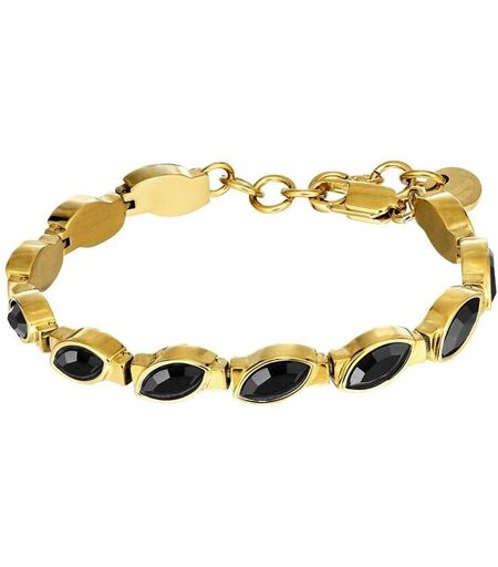 CELTIS - er et elegant og smalt tennis armbånd designet i poleret stål monteret med en række af navette formede krystaller. Det leddelte armbånd med de usædvanlige krystalsten er designet i poleret stål, overlagt med en teknisk belægning der bare holder. Længde 17, 5 cm med mulighed for forlængelse. Her vist i guld tonet og jetsortee krystaller. Designet i Danmark og fri for cadmium, nikkel og bly. Shop DYRBERG/KERN CELTIS ARMBÅND her. Elsker du også Dyrberg/Kern smykker, ringe, armbånd, ørestikker, øreringe og halskæder? Vi har alt på Dyrberg/Kern shoppen. ...