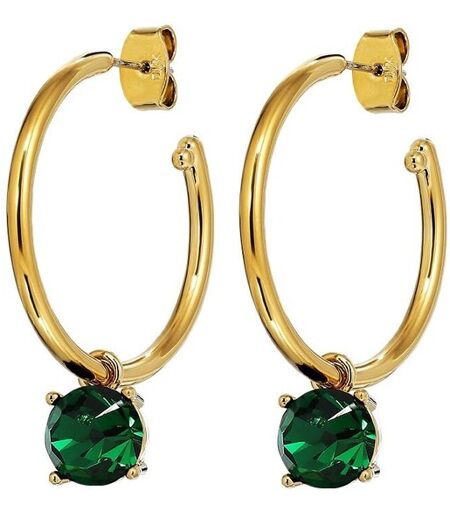 DIEGA - en cool og trendy stor hoopørenring på 26 mm i diameter. Vedhænget er en aftagelig 8 mm store facetslebet krystal sat i en let fatning. Her vist i skinnende guldfinish og smaragd grønne sten. SPinkel i design og lige skøn til hverdag og fest. Total længde ca 35 mm. Stift i kirurgisk stål. DANSK DESIGN - allergitestet -og fri fra cadmium, bly og nikkel. Shop DYRBERG/KERN DIEGA ØRERING her. Elsker du også Dyrberg/Kern smykker, ringe, armbånd, ørestikker, øreringe og halskæder? Vi har alt på Dyrberg/Kern shoppen. ...