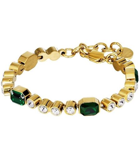 GRIVNA - et feminint og usædanligt Art Deco inspireret krystalarmbånd lavet med en række krystaller afløst af fire større smaragdslebne krystaller. Lavet i rustfrit stål og belagt og poleret til perfektion. Her vist i cool urban kombination af smukke smaragdgrønne og klare sten på guldtonet finish. Længde 17 cm + forlængelse. DANSK DESIGN - fri for cadmium, bly og nikkel. Shop DYRBERG/KERN GRIVNA ARMBÅND her. Elsker du også Dyrberg/Kern smykker, ringe, armbånd, ørestikker, øreringe og halskæder? Vi har alt på Dyrberg/Kern shoppen. ...