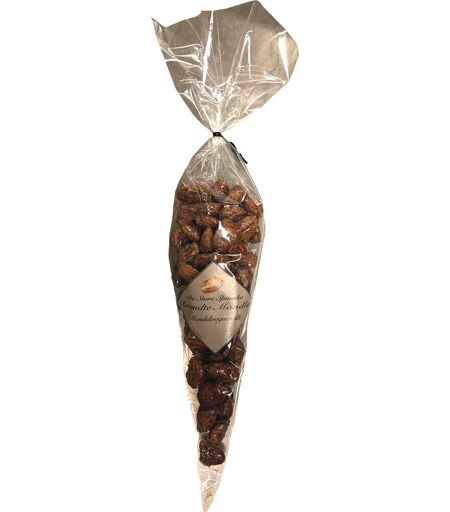 Delikate brændte mandler i pose Karameliserede mandler er en af de mest simple, men utroligt lækre julegodter. Her får du de lækre brændte mandler i en klassisk spidspose. Et oplagt valg, hvis du står og mangler en spiselig gave til en hyggelig julehilsen. Brændte mandler fra Mandelvognen bliver fremstillet af ekstra store spanske mandler, som bliver omhyggeligt håndsorteret og hurtigt fragtet til Danmark. De friskplukkede mandler bliver herefter karameliseret ud fra devisen "mere mandel, mindre sukker". Det er ikke bare sukkermandler - hvide, nubrede og hårde. Nej, brændte mandler fra Mandelvognen er store, blanke, lysebrune, og med et fint lag velbrændt sukker. Gode råvarer, naturlige ingredienser og godt dansk håndværk. Hvordan smager mandlerne så? Himmelsk og ligesom i gamle dage. De er uimodståelige og lige til at guffe i sig. Juleknas af fineste skuffe, til årets kolde dage. Indhold: 130 g 20 poser pr. kasse ...