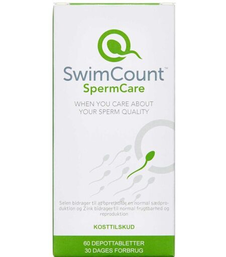 Swimcount Spermcare er et kosttilskud til mænd, som er tilsat selen og zink. Selen bidrager til at opretholde en normal sædproduktion. Zink bidrager til normal frugtbarhed og reproduktion. Zink bidrager til at vedligeholde et normalt testoroniveau i blodet. Selen og Zink bidrager til at beskytte cellerne mod oxiditativt stress. Derudover ...