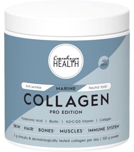 Marine kollagenpulver (FISK) tilsat hyaluronsyre og 4 essentielle vitaminer for dit samlede velvære. Marine Collagen Pro Edition er for dig, der ønsker det bedste indenfor kollagen og kvalitets vitaminer. Marine Collagen Pro Edition fra Copenhagen Health ...
