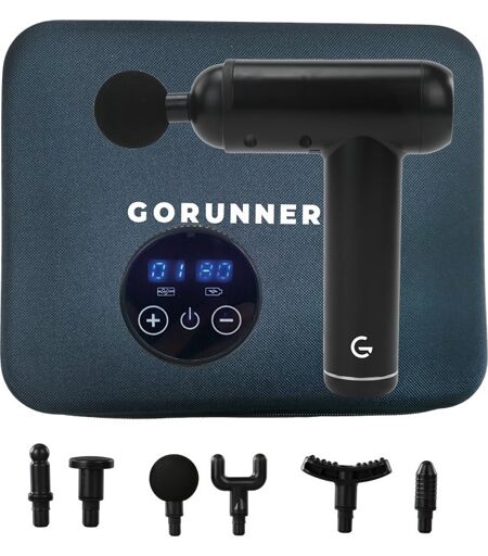 Gorunner massagepistol 2.0GORUNNER Massagepistol 2.0 kommer med digital display og med 6 udskiftelige massagepuder.Du kan finjustere den ønskede kraft den skal massagere med fra 1-99 via knapperne ved displayet.Lindre muskelstivhed og ømhedØge blodcirkulationForbedre sundheden for blødt vævOptmere restitionstid99 niveauerLCD displayOpbevaringstaskerVægt 1,1 kg1500 mAh batteri6 massagehoveder/puderUSB ladekabel De 6 massagehoveder:En til større muskelgrupperEn til nakke, ryg, akillesEn til større arm- og benmuskelgrupperEn til dybdegående massageEn til universalg til de mesteEn til acupoint massage ...