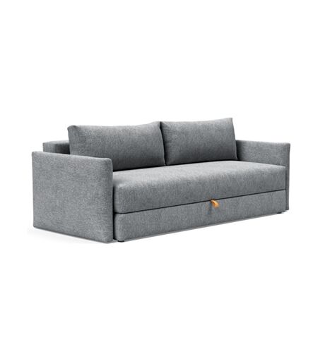 Innovation Living Tripi Sovesofa L: 227 cm - Mat Sort/Twist Granite Skøn sovesofa fra Innovation Living. Den klassiske Tripi sovesofa bærer præg af nordisk design som forener komfort og stilrent design. Sovesofaens simplicitet understreges ved den bløde og runde madras, de store hynder og en smuk naturlig læderrem. Med den lette og enkle konvertering til sovesofa, et skjult opbevaringsrum og luksuriøs komfort, løser Tripi sovesofaen let og enkelt hverdagens udfordringer. Sofaen er ideel til dig som bor på få kvadratmeter og ønsker at bruge pladsen optimalt eller til dig som ønsker at have en fin soveløsning til overnattende gæster. Tripi er fremstillet af 100 % polyester og udstyret med en Pocket Spring Dual madras, som søger for at du får en god nats søvn. Derudover har sofaen en martindale på 36.000, hvilket egner sig ideelt til møbler som bruges i hverdagen - dermed har sovesofaen en særdeles god slidstyrke. Design: Emil Højfeldt & Per Weiss 2015, 2016 Komfort: Komforttype: blød. Hynder: fjer- og fiberfyld blanding. Materiale Stof: Tekstil: 565 Twist Granite, 100 % polyester Martindale: 36.000 Pilling: 5 Farveægthed: 4-5 Materiale Stel: Stel af mat sort stål Mål som sofa: L: 227 cm D: 108 cm H: 82 cm Sædehøjde: 43 cm Sædedybde: 51 cm Armlænshøjde: 64 cm Mål som seng: B: 150 cm L: 200 cm H: 43 cm Anbefalet max. belastning: 330 kg. ...