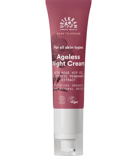 Urtekram Soft Wild Rose Ageless Night Cream er en fugtgivende natcreme, der hjælper med at reducere de første tegn på aldring. Natcremen indeholder C-vitamin, hybenolie og asiatisk centella, der hjælper med at beskytte huden mod frie radikaler. Hyaluronsyre hjælper med at reducere synligheden af fine linjer og aloe vera, sheasmør, jojobaolie samt mandelolie giver fugt og næring til huden natten over. For et endnu bedre resultat, brug Urtekram Soft Wild Rose Ageless Serum, før du påfører natcremen. Denne natcreme er certificeret af Ecocert COSMOS Organic, baseret på ingredienser med 100% naturlig oprindelse, dansk produceret og vegansk. Fordele: Natcreme Modvirker de første ældningstegn Reducere synligheden af fine linjer Fugter og nærer huden Beskytter mod frie radikaler Velegnet til alle hudtyper Certificeret COSMOS Organic af Ecocert 100% naturlig oprindelse Uden silikone, mineralolie og syntetiske farvestoffer Vegansk Dansk produceret Anvendelse: Anvendes på afrenset hud Påføres i ansigtet og på halsen Bruges om aftenen, gerne over Soft Wild Rose Ageless Serum for et endnu bedre resultat Kombinér gerne med de øvrige produkter til ansigtet fra Soft Wild Rose-serien for at opnå det bedste resultat Ingrediensliste: Aloe Barbadensis Leaf Extract, Butyrospermum Parkii Butter, Propanediol, Polyglyceryl-3 Dicitrate/Stearate, Cetearyl Alcohol, Zea Mays Starch, Glyceryl Stearate SE, Prunus Amygdalus Dulcis Oil, Coco-Caprylate, Silica, Rosa Canina Fruit Oil, Simmondsia Chinensis Seed Oil, Centella Asiatica Leaf Extract, Magnolia Officinalis Bark Extract, Ascorbyl Glucoside, Bidens Pilosa Extract, Sodium Hyaluronate, Astrocaryum Murumuru Seed Butter, Gossypium Herbaceum Seed Oil, Linum Usitatissimum Seed Oil, Squalene, Glycerin, Xanthan Gum, CI 77491, Mica, Sodium Gluconate, Tocopherol, Lactic Acid, Sodium Hydroxide, Aqua, Glyceryl Caprylate, Glyceryl Undecylenate, Parfum, Citral, Geraniol, Limonene, Linalool. ( = ingredient from organic farming). 81 % organic of total 82 % organic of total minus water and minerals 100 % natural origin of total COSMOS ORGANIC certified by Ecocert Greenlife according to COSMOS Standard. ...