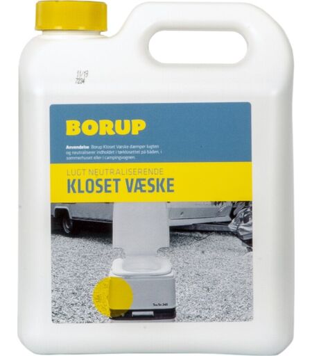 Borup Kloset Væske – til tørklosetter og afløbBorup kloset væske dæmper lugten og desinficerer og neutraliserer indholdet i tørklosetter, hvilket gør væsken særdeles velegnet til brug i campingvognen og sommerhuset, samt på båden. Kloset væsken kan også med fordel anvendes jævnligt i diverse afløb mod bakterier og dårlig lugt.Hæld 1/4 liter Klosetvæske i en 5 liters tank sammen med 1 liter vand. Skulle der senere opstå behov for at komme mere væske i klosettet, anvendes kun vand.Indhold: 2,5 LTil tørklosetter og afløb ...