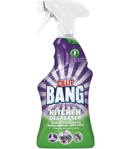 Cillit Bang Kitchen Degreaser – perfekt til rengøring af køkkenetKitchen Degreaser fra Cillit Bang fjerner effektivt køkkensnavs, der ellers kan være vanskeligt at få bugt med. Den effektive rengøringsspray indeholder effektive og overfladeaktive stoffer, som gør formlen 100 % affedtende, så du nemt kan gøre rent uden at skrubbe. Sprayen fjerner hurtigt og effektivt madpletter, fastbrændte madrester, snavs og selv det vanskeligste fedt fra de mest almindelige overflader i køkkenet og skaber et godt grundlag for et rent og sundt køkken. Cillit Bang Kitchen Degreaser er godkendt til at anvendelse på overflader med fødevarekontakt så du kan med stor fordel anvende den på f.eks. komfuret, ovnlågen, emhætten, køkkenbordet, fliser, klinker og vasken såvel som udendørs på udfordrende snavs som den beskidte grill eller havemøblerne. Du kan også bruge den til rengøring af gryder, pander og ovnfaste fade.Indhold: 750 mlTil effektiv fjernelse af køkkensnavs100 % affedtende effektFlasken er fremstillet af 75% genanvendt materiale ...