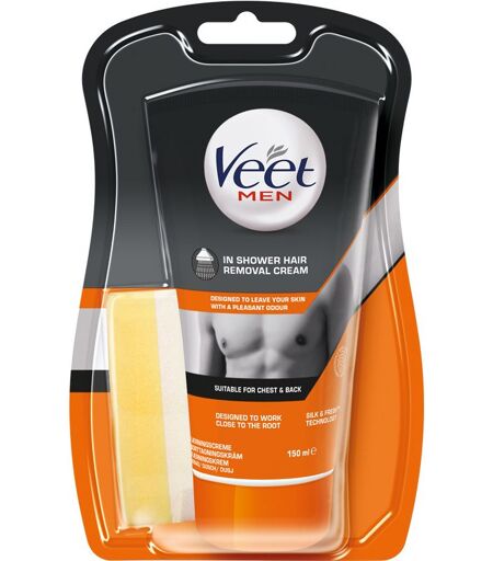 Veet Men In Shower Hair Removal Cream er en hårfjerningscreme, som er udviklet specielt til kunne fjerne uønsket hårvækst hurtigt og let, mens du bader. Den kan anvendes på både ryg, bryst, arme og ben, samt i armhulerne og lysken, hvor den virker på selv de korteste hår. Cremen er udviklet til at fjerne hårene ved hårrødderne, i stedet for at skære dem af med f.eks. barberblade eller barbermaskine. Dermed er hårene længere tid om at vokse ud igen, ligesom man også undgår den velkendte, stikkende fornemmelse, når hårene gror ud. Veet Men In Shower Hair Removal Cream er nem at påføre huden med den medfølgende svamp og skal kun skal virke i 3-6 minutter for at opnå et glat og hårfrit resultat. Samtidig forkæler denne creme din hud med en behagelig duft både under og efter hårfjerningen, ligesom den også tilfører huden fugt, så den holdes dejlig blød og hydreret i op til 24 timer. Få en lækker glat hud, mens du bader, med denne effektive og velduftende Veet Men In Shower Hair Removal Cream. Fordele: Hårfjerningscreme Til brug i badet Kan anvendes på ryg, bryst, arme, ben, samt i armhuler og lysken Glat og hårfrit resultat Skal kun virke i 3-6 minutter Holder huden blød og fugtet i op til 24 timer Kan bruges af både mænd og kvinder Til alle hudtyper Dermatologisk testet Behagelig duft Svamp medfølger Anvendelse: Læs og følg altid brugsvejledningen meget nøje Fordel cremen jævnt på tør hud med svampens bløde, farvede side, så alt hår er dækket Vent mindst 1 minut, inden du går ind i badet Hold så vidt muligt de dækkede områder væk fra direkte vandstråler Lad cremen virke i 2 minutter Det er normalt, at noget af cremen gradvist vaskes bort Test på et lille område, om cremen har siddet længe nok Er hårene svære at fjerne, lad da cremen sidde i op til 3 minutter mere Cremen må maksimalt virke på huden i 6 minutter i alt Massér derefter cremen af med cirkulære bevægelser med svampens grove, hvide side, brug den bløde side til sarte områder Skyl grundigt huden med vand for at fjerne cremen helt og tør efter Bruges med mindst 72 timers mellemrum Undgå svømning, solbadning, solarium eller at bruge antiperspirant og anden parfume i 24 timer efter behandling Må ikke bruges på åreknuder, ar, modermærker, bumset, beskadiget, irriteret eller solbrændt hud Det anbefales at teste produktet på et lille hudområde først. Er der ikke opstået en uønsket reaktion efter 24 timer, kan man fortsætte brugen. Ingrediensliste: Aqua, Urea, Cetearyl Alcohol, Potassium Thioglycolate, Paraffinum Liquidum,Calcium Hydroxide, Ceteareth-20, Talc, Glycerin, VP/Hexadecene Copolymer, Parfum,Magnesium Trisilicate, Potassium Hydroxide, Propylene Glycol, Lithium MagnesiumSodium Silicate, Butyrospermum Parkii Butter, Sodium Gluconate, AcrylatesCopolymer, CI 77891. ...