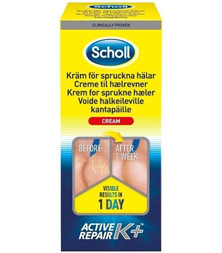 Scholl Active Repair K+ er en genoprettende og lindrende fodcreme, der effektivt fjerner og heler revnede, tørre hæle øjeblikkeligt. Denne creme indeholder 25% Karbamid, hvilket opretholder og styrker hudens fugtbarriere. Denne fantastiske fodcreme trænger hurtigt ind i huden og efterlader huden med en behagelig følelse. Cremen er beriget med Scholls innovative ingrediens nemlig, Active Repair K+, hvilket har en styrkende virkning for kroppens naturlige helings- og reparationsproces. Ikke nok med dette, så indeholder cremen panthenol, der har beroligende og plejende egenskaber. Efter blot én dag, vil du opleve synlige resultater samt markante forbedringer efter én uge. Prøv Scholl Active Repair K+ der med sin helende virkning skaber mirakler. Fordele: Fodcreme Mod hælrevner Hurtig absorberende Lindrende Active Repair K+ Synlige resultater på 1 dag Markante forbedringer på 1 uge Beroligende og plejende egenskaber 25 % Karbamid Styrker kroppens naturlige helings- og reparationsproces Parfumefri Dermatologisk testet Anvendelse: Påfør på ren og tør hud Anvendes 2 gange dagligt Anvendes efter behov eller regelmæssigt, efter det ønskede resultat er opnået Ingrediensliste: Vand, urea, decyloleat, dimeticon, vaseline, lanolin, syntetisk voks, polyglyceryl-4 diisostearat/polyhydroxystearat/sebacat, phenoxyethanol, panthenol, carbomer, chlorophenesin, methylparaben, ethylparaben, butylparaben, propylparaben, hydrolyseret keratin, keratin, BH. ...