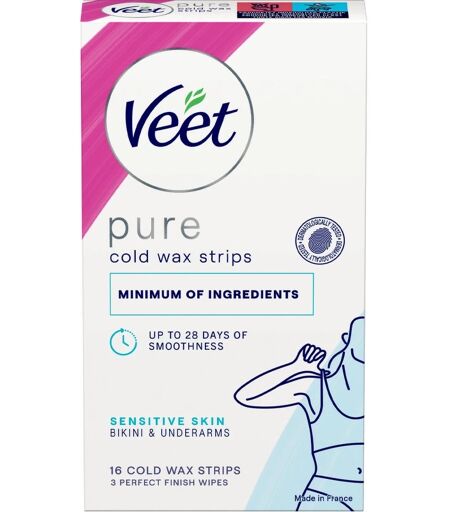 Veet Pure Cold Wax Strips Bikini & Underarms Sensitive Skin 16 Pieces