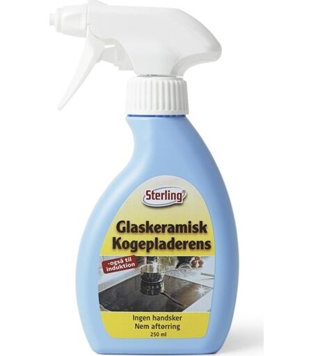 Sterling Glaskeramisk Kogepladerens Spray Gør dit glaskeramiske- eller induktions- komfur skinnende rent med Sterling Glaskeramiske Kogepladerens. Kogepladerensen danner samtidig en usynlig hinde på kogepladen som forhindrer at snavs brænder fast, og det gør rengøringen lettere fremover. Evt. fastbrændinger af madrester, fedt, snavs osv. kan også nemt fjernes med Sterling Glaskeramisk Kogepladerens. Fordi Sterling Glaskeramisk Kogepladerens leveres på sprayform, er det nemt at påføre midlet uden at spilde. Indhold: 250mlSprayflasken er fremstillet af minimum 95% genanvendt plast ...