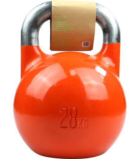 Konkurrencedygtig kettlebell 28 kg Konkurrence kettlebells som kendes ved at have samme størrelse uanset vægt. Farver efter de internationale regler. Med størrelsen har kettlebells en større bundflade og er dermed mere stabil. Materialet er stål og er godkendt til konkurrencebrug. Træning med kettlebells er anbefalelsesværdigt fordi: Hele kroppen bliver trænet på én gang Både de langsomme og de eksplosive muskelfibre bliver trænet Der trænes både styrke og udholdenhed Koordination, balance og fleksibilitet forbedres Kernemuskulaturen bliver styrket ...