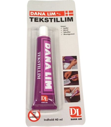 Dana Tekstillim – til limning på tøj og tekstilerTekstillimen fra Dana er en vandbaseret naturgummilim, som kan bruges på forskellige typer af textil. Brug den på f.eks. arbejdstøj, møbelstof, læder skin og skumgummi. Limen er letflydende og giver en blød og elastisk limfuge, der tåler vand. Du kan derfor sagtens vaske dit tøj, uden at limningen går op eller bliver ødelagt. Indhold: 40 mlVandbaseret naturgummilim Tåler vand ...