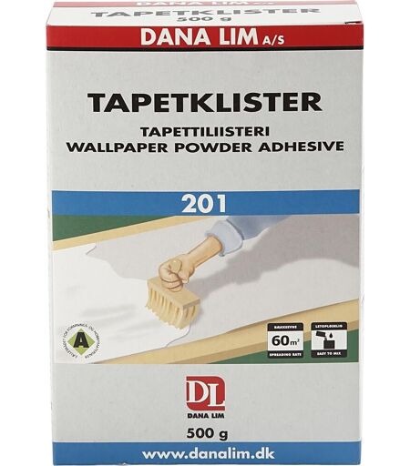 Tapetklister i god kvalitet Med tapetklister fra Dana Lim får du den gode og velkendte tapetklister i pulverform. Pulveret skal opløses i ca. 11 liter koldt vand og rækker til ca. 60 m2. Tapetklisteret kan bruges både til professionelle og kreative formål. Brug det f.eks. til opsætning af alle typer af tapet eller brug det til diverse hobbyprojekter som eksempelvis sjov papmache.Dana Lim tapetklister er desuden A-mærket, hvilket betyder at klisteret er fri for problematiske stoffer og samtidig overholder alle gældende sikkerheds- og sundhedskrav på området, så det er velegnet og sikkert at bruge for børn såvel som voksne.Indhold: 500 gA-mærket ...