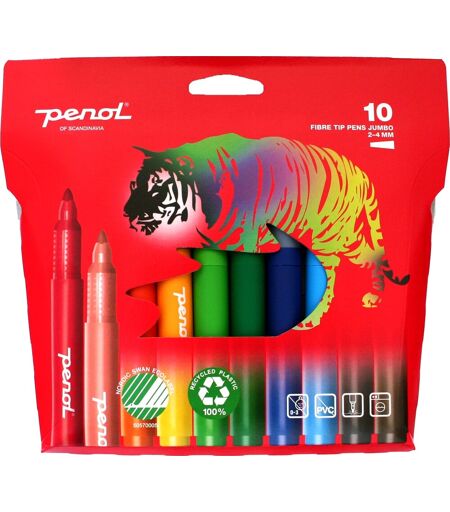 Penol Jumbo Tusser – Tuscher - Kært barn har mange navne...Med Penol jumbo tusser får du gode og farverige tykke tusser i anerkendt kvalitet til en god pris. Det er altid sjovt at tegne og farve med tusser og med sættet her får du timevis af kreative og underholdende tegneoplevelser. Tusserne har en 2-4 mm fiberspids og er fremstillet med vandbaseret blæk, så du let kan vaske farven af hænder og tøj. Tusserne er samtidig designet med en ”hætte-af” effekt, hvilket betyder at blækket er designet til at du kan efterlade tussen uden hætte i op til 5 dage, uden at den tørrer ud. Tusser fra Penol er produceret med en ventileret sikkerhedshætte der sikrer iltpassage til luftvejene, hvis uheldet er ude og hætten sluges.Tusserne overholder alle krav til børnesikkerhed og kan derfor bruges af børn (+3 år) såvel som voksne. Dertil er tusserne PVC-frie og er forsynet med det nordiske Svanemærke, som er din garanti for et gennemtænkt produkt.Sæt med 10 stk. tusserAssorterede farverStregbredde: 2-4 mmPVC-fri og Svanemærket ...
