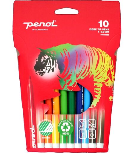 Penol Tusser – Tuscher - Kært barn har mange navne.. Med Penol tusser får du gode og farverige standard tusser i anerkendt kvalitet til en god pris. Det er altid sjovt at tegne og farve med tusser og med sættet her får du timevis af kreative og underholdende tegneoplevelser. Tusserne har en 1-1,5 mm fiberspids, så tusserne også er velegnede som skrivetuscher. Dertil er tusserne fremstillet med vandbaseret blæk, så du let kan vaske farven af hænder og tøj. Tusserne er samtidig designet med en ”hætte-af” effekt, hvilket betyder at blækket er designet til at du kan efterlade tussen uden hætte i op til 5 dage, uden at den tørrer ud. Tusser fra Penol er produceret med en ventileret sikkerhedshætte der sikrer iltpassage til luftvejene, hvis uheldet er ude og hætten sluges.Tusserne overholder alle krav til børnesikkerhed og kan derfor bruges af børn (+3 år) såvel som voksne. Dertil er tusserne PVC-frie og er forsynet med det nordiske Svanemærke, som er din garanti for et gennemtænkt produkt.Sæt med 10 stk. tusserAssorterede farverStregbredde: 1-1,5 mm PVC-fri og Svanemærket ...