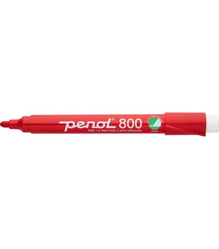 Penol 800 - et svanemærket og kvalitetsbevidst valg! Penol 800 er den første whiteboardpen på markedet, som indeholder et lavt niveau af miljø- og sundhedsskadelige stoffer. Markeren skriver med et højt pigmenteret og alkohol-baseret blæk, som ikke er fremstillet af tungmetaller. Selve pennen er fremstillet af genanvendeligt plast. Whiteboardmarkeren kan anvendes til whiteboardtavler og glastavler. Blækket kan fjernes med en tør klud. Farve: Rød Stregtykkelse: 1,5 mm Rund spids 10 stk. pr. æske Markedets første SVANEMÆRKEDE whiteboardmarker!Mange af de skriveredskaber, som vi bruger på kontoret og hjemme såsom kuglepenne, blyanter, rollerpenne og forskellige typer af tusser kan indeholde farlige stoffer som arsen, bly og krom. Dette kan du undgå ved at vælge svanemærkede produkter. Ud over at opfylde krav til indholdet af miljø- og sundhedsskadelige stoffer i blæk og hylster, skal de også opfylde krav til pennens levetid (skrivelængde), sådan at de holder længe.Penols svanemærkede permanente markere (0700, 0750) og whiteboardmarkere (800, 850) er et godt valg, hvis du gerne vil være sikret produkter hvor høj kvalitet og god lang holdbarhed, som altid er i orden. ...