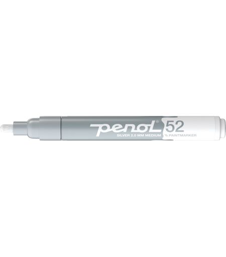 Penol 52 – perfekt til dekoration og kreative formålMed Penol 52 får du en kreativ paintmarker med en medium rund spids og en stregbredde på 2 mm som kan bruges på langt de fleste overflader, som f.eks. plastik, glas, gummi, metal, sten, træ, papir, karton og pap. Blækket i markeren er permanent og minder meget om maling, da blækket lægger sig ovenpå overfladen ligesom maling gør ved påføring, hvilket gør markeren velegnet på selv mørke og transparente materialer, hvor andre markere kan have svært ved at følge med. Blækket er spritbaseret, hurtigtørrende, lysægte og vandfast og markeren skal rystet inden brug og blækket skal forsigtigt pumpes ned til spidsen før markeren er klar til at blive brugt.Penol paint markeren har en flot metalfarve, som giver en glinsende og skinnende metallic-effekt når du skriver eller tegner med pennen. Penol 52 kan derfor med fordel bruges som DIY-pen, da den er god og velegnet til forskellige kreative aktiviteter og projekter som f.eks. dekoration og udsmykning. Farve: SølvStregbredde: 2 mmSpids: RundPermanent malingslignende blækHurtigtørrendeVandfast og lysægte ...
