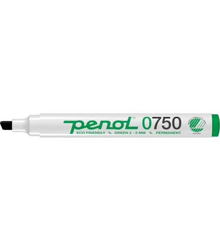 Penol 0750 Permanent Marker, grøn - en klassiker nu med SvanemærkeSvanemærket spritmarker, som er udstyret med en robust akrylspids, som gør den velegnet til at skrive på stort set alle overflader f.eks. papir, karton, glas, plast, metal, træ mv. Penol 0750 har hætte i skrivefarven, så man altid ved, hvilken farve man har fået fat i. Markeren skriver med permanent blæk, hvilket først og fremmest betyder, at farven er vandfast, når den er tører. Det gør også, at du kan skrive eller tegne på alle glatte materialer, uden at smitte af.Du kan få Penol 0750 i både enkeltfarver og i et praktisk sæt med 4 farver. Farve: GrønStregbredde: 2-5 mmSkråtskåret spidsMarkedets første SVANEMÆRKEDE permanente marker!Mange af de skriveredskaber, som vi bruger på kontoret og hjemme såsom kuglepenne, blyanter, rollerpenne og forskellige typer af tusser kan indeholde farlige stoffer som arsen, bly og krom. Dette kan du undgå ved at vælge svanemærkede produkter. Ud over at opfylde krav til indholdet af miljø- og sundhedsskadelige stoffer i blæk og hylster, skal de også opfylde krav til pennens levetid (skrivelængde), sådan at de holder længe.Penols svanemærkede permanente markere (0700, 0750) og whiteboardmarkere (800, 850) er et godt valg, hvis du gerne vil være sikret produkter hvor høj kvalitet og god lang holdbarhed, som altid er i orden. ...