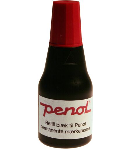 Refill til bestseller Penol markere Refill til penol markere i blå. Refillen passer til penol 700/750, Penol 100 og til Penol 1000. Flasken indeholder 25 ml pr. flaske. Farve: RødFås også i andre farver Passer til Penol 700/750, Penol 100 og Penol 1000 Indhold: 25 ml. pr. flaske Rækker til 8 opfyldninger af Penol 700/750, 4-5 opfyldninger af Penol 100 og 3-4 opfyldninger af Penol 1000 Købes enkeltvis10 stk. pr. æskeSådan bruger du blækrefillen:Tag hætten af flasken.Skru toppen/spidsen af den tomme marker.Hæld blæk i markeren/beholderen indtil "tamponen" indeni igen er våd.Skru toppen/spidsen på den tomme marker.Obs: Penol 700 og Penol 750 genopfyldes ved at åbne en lille flap i bunden af pennen, hvorefter farven let kan påfyldes til tamponen er våd. ...