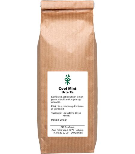 Cool mint te med frisk smag af citrus Dejlig frugtte med en kraftig og forfriskende smag af citrus, med en anelse lakridsrod og en let sødme fra æble. Urteteen er en såkaldt tisane te, som er en te der består af frugt- og plantestykker, istedet for teblade. Tisanes er særlig velegnede til iste, både med og uden sukker. Cool Mint teen kan selvfølgelig også nydes varm, som en dejlig sød forfriskning i løbet af dagen. Den luksuriøse teblanding indeholder lakridsrod, æblestykker, citrongræs, marokkansk mynte og citrusolie. Den har en læskende karakter, på grund af den søde smag. Cool Mint urteteen bliver sødere i smagen jo længere den trækker. Lad den trække i 70-80 grader vand, og lad urterne blive i vandet, for at opnå det bedste resultat. Indhold: 200g Type: Urtete Ikke tilsat garvesyre Dosering: 2 gram pr. kop Trækketid: 4 min. ...