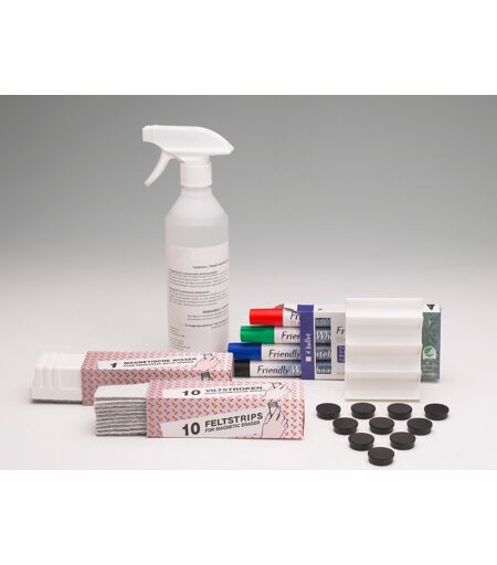 Whiteboard sæt Få det maksimale udbytte af din whiteboardtavle Specifikationer 4 Whiteboardpenne 1 Magnetisk penneholder i hvid plast 1 Magnetisk tavlevisker 10 ekstra filtbunde til tavlevisker, 1 whiteboard rensespray 10 magneter Virkeligt et godt og uundværligt startkit. ...