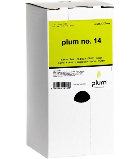 Plum No. 14 Håndsæbe – hudvenlig og mild med god renseeffektPlum leverer hygiejneprodukter i professionel kvalitet og har mere end 50 års erfaringen indenfor hygiejne og udvikling af praktiske løsninger til danske og udenlandske arbejdspladser. Plums sortiment består af en bred vifte af produkter som f.eks. sæbe, hudplejecreme og rengørings- og desinfektionsprodukter, der hver især er tilpasset krav og behov i såvel industrien som i levnedsmiddel- og sundhedssektoren.Håndsæben No. 14 fra Plum er en mild og hudvenlig håndsæbe med en mild og frisk duft. Den milde håndsæbe har en karakteristisk lyserød farve og har en særdeles god renseeffekt, hvilket gør den velegnet til en effektiv håndvask af særligt snavsede hænder. Plum No. 14 er er desuden dermatologisk testet, så du kan være sikker på at den ikke skader dine hænder ved hyppigt brug.For at huden kan holdes sund skal den holdes ren, men en hyppig håndvask kan være belastende for huden og det er derfor vigtigt at vælge en mild og hudvenlig sæbe. Plum håndsæber er alle særdeles milde og effektive og har en pH-værdi der minder meget om hudens egen. Dertil indeholder alle Plum håndsæber ingredienser med genindfedtede effekt, som minimerer udtørring af huden så huden holdes sund og frisk.No. 14 håndsæben fra Plum kommer her i en smart og praktisk bag-in-boks med pumpe, som kan bruges i MultiPlum MP2000 dispensere.Indhold: 1,4 LDuft: Mild og friskpH-værdi: 5,0-5,5Hudvenlig og mildSærdeles god renseeffektVelegnet til effektiv håndvask af særdeles snavsede hænderDermatologisk testet ...