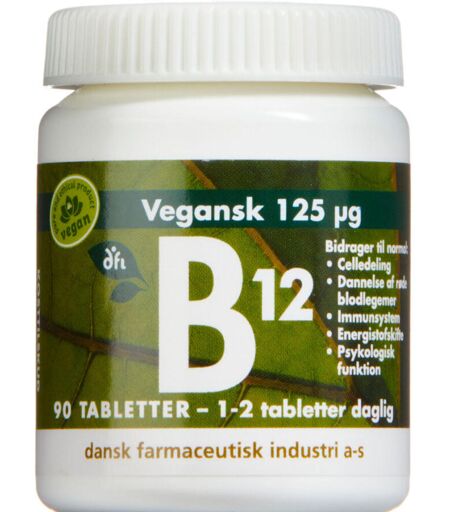 B-12 vitamin er et kosttilskud med indhold af 125 micg B12. B-vitamin kaldes ofte "ældrevitaminet", da især ældre er i underskud med B12. Veganere risikerer også at få B12-mangel, hvilket bl.a. kan medføre løse tænder. B12 vitamin bidrager til normal: Dannelse af røde blodlegemer, celledeling, energistofskifte, omsætning af homocystin, psykologisk funktion, nervesystemets normale funktion, normalt immunsystem. Dispenseringsform Tabletter ...