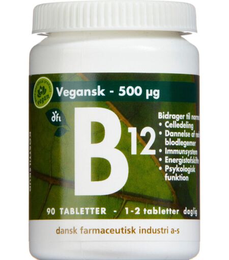 B-12 vitamin er et kosttilskud med indhold af 500 mikg Vitamin B12 per tablet. Vitamin B12 bidrager til normal dannelse af røde blodlegemercelledelingenergistofskifteomsætning af homocystinpsykologisk funktion Derudover bidrager Vitamin B12 til vedligeholdelse af normalt immunsystem og nervesystemets normale funktion. Dispenseringsform Tabletter ...