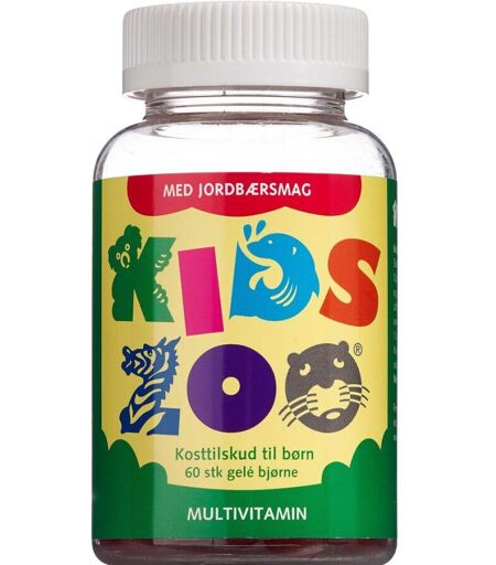 Kids Zoo Multivitamin er et kosttilskud, som er velegnet til børn fra 3 år. Kosttilskuddet er vitamin-gummier, der kan tygges. De kommer i en beholder med børnesikret låg. Multivitaminerne ...