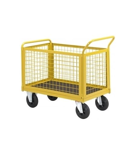 Lagervogn med hylde, Netsider og luftgummihjul Produceret i Danmark - højeste kvalitet 18 mm plade af europæisk kvalitetstræ - vandfast og kantforseglet Gul polyestermaling med god UV-bestandighed Produceret af Europæisk kvalitetsstål - Runde rør DIN 2394 Specifikationer: Mål (LxBxH): 1000x600x1020 mm Højde bund/hylde: 320 mm Siddehøjde: 600 mm Hjul: Luftgummi 3.00 x 4/4 stålfælg med rullelejer Egenvægt: 41 kg Lastkapacitet: 400 kg ...