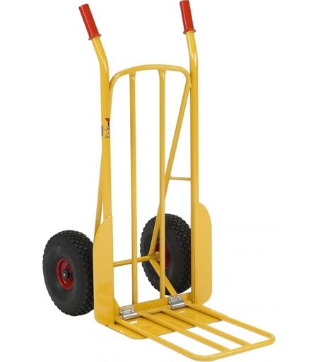 Kapacitet på 250 kgRobust sækkevogn med både udfald og ekstra stor bæreplade samt praktiske lufthjul.Kapacitet: 250 kgTotalmål BxH: 550x1130 mmDybde bæreplade: 205/520 mmHjul: Luftgummi 4.00x4/4 - Nav 20x75 mm - Stålfælg med rullelejeNettovægt: 16 kg ...