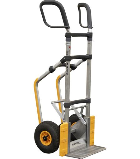 Kvalitets sækkevogn med glideskinner, TipLet funktion og ergonomiske håndtagAlu-Pro 2500 CLS S SR TIP er den orginale udgave af den populære Alu-pro 2500. Den har en standard bæreplade, TipLet funktion og glideskinner.Derudover er den udstyret med de populære ergonomiske håndtag, hvor vinklerne bevirker at arme og hænders stilling bliver optimal og belastningen af hænder, albuer og skulder leddene minimeres. Denne model er udstyret med en stor bæreplade.De justerbare håndtag, kan indstilles til den optimale arbejdshøjde og -stilling.Produceret i DanmarkTeleskophåndtagPlastdele af højkvalitetsplast (HDPE)TipLet funktionKapacitet: 250 kgDimensioner (BxH): 500 x 1180/1530 mmVægt: 15 kgHjul: Luftgummi 3.00 x 4/4. Nav: 20 x 75 mm. Plastfælg med rullelejeBæreplade: 220 mm ...